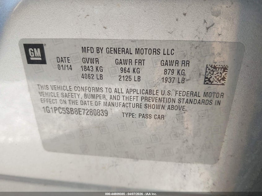 2014 CHEVROLET CRUZE 1LT AUTO for Sale in Inpolis, IN