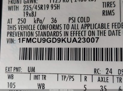 • 1FMCU9GD9KUA23007